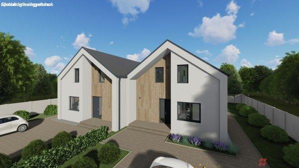 Két szint lakóterű ikerházi hőszivattyús padlófűtéses lakóépület leköthető