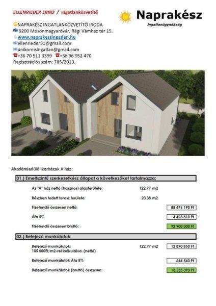 Eladó 122 nm-es Új építésű Ikerház Mosonmagyaróvár