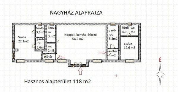 három külön egység.1, 309 m2-es telken van egy 120 m2-es lakóház, két