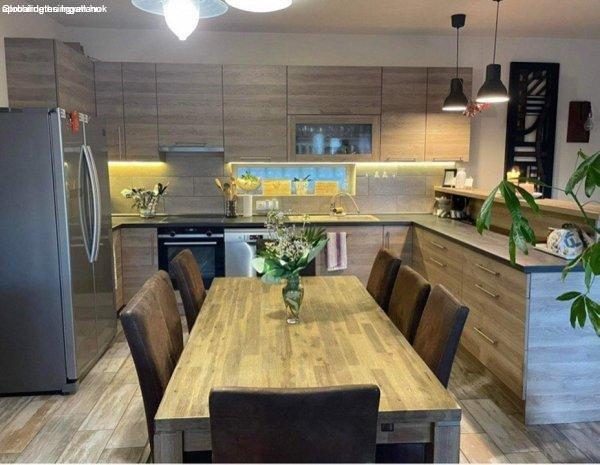 hálóegységet tartalmaz, amelyet egy 54 m2-es nappali-konyha-étkező köt össze.
