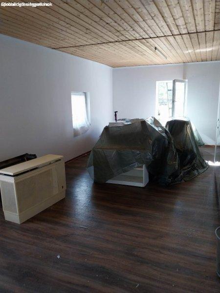 héjazata cserép. Az lakás első részén külön bejáraton étkező, konyha, 2 szoba,