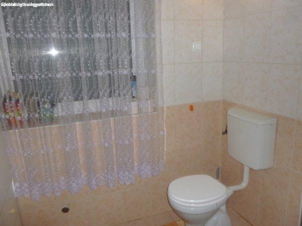 előszoba, közlekedő, sarok kádas fürdőszoba található.Kettes lakásban egy szoba,