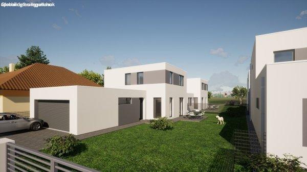 forgalomtól mentes zsákutcában új építésű kétszintes ikerházak eladók. Iskola,