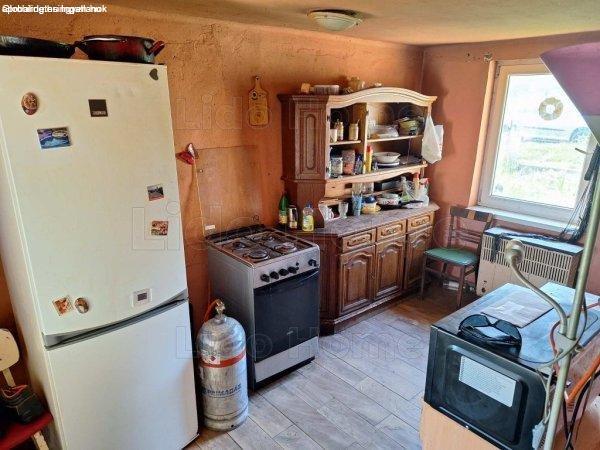 falazatú családi ház.70 m2 lakótérből és 2059 m2 telekből áll.2 és 2 fél szoba,
