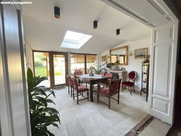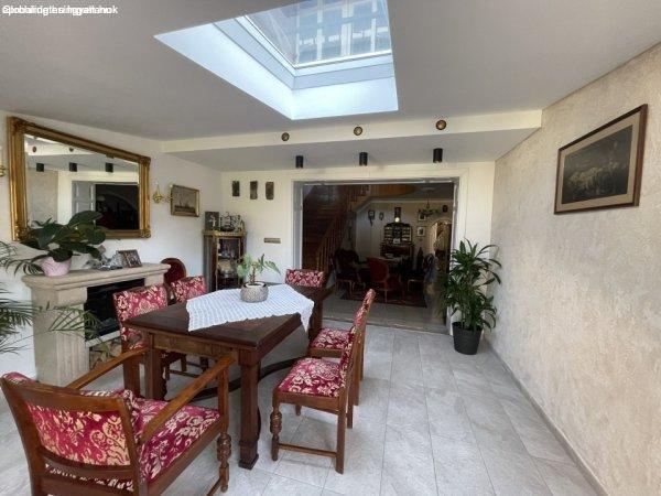 új kondenzációs kazánnal. Nappaliban fa tüzelésű kandalló, télikertben