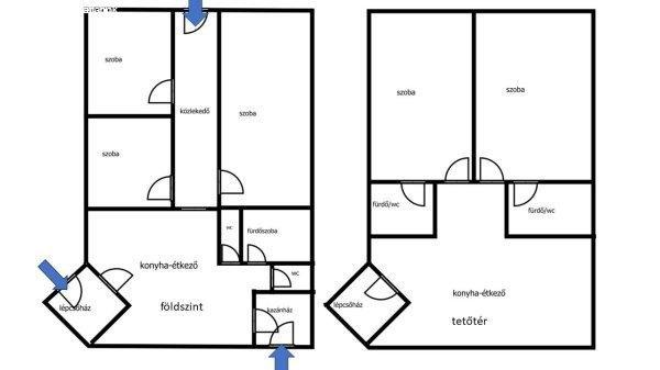 lakrészes, 2 külön bejáratos családi ház, összesen: 5 szobával, 3 fürdőszobával,