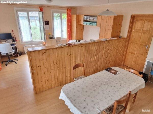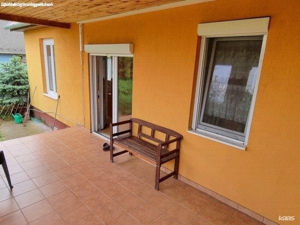 egész +1 fél? helyiségek: fedett terasz, előszoba, konyha, étkező/nappali, 2db