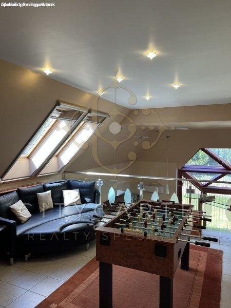 helyiség található, jakuzzival, szaunával illetve tornaszobával és dupla