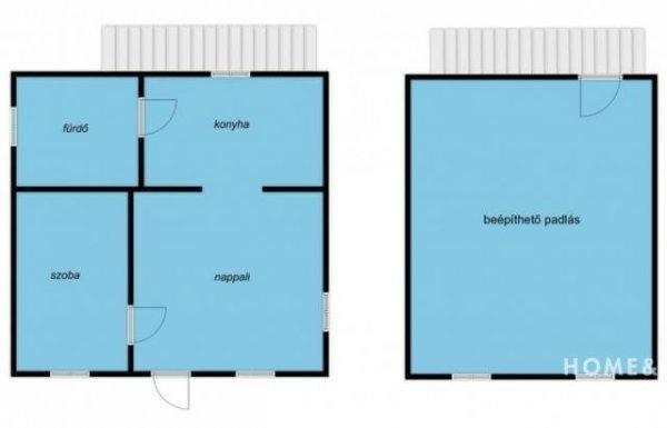ház főbb jellemzői: lenti lakótér 49 m2, nappali, szoba, konyha,