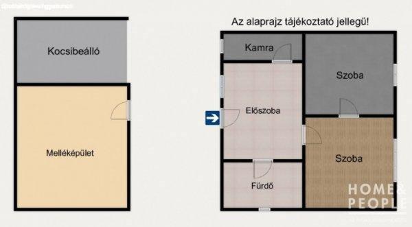 paraméterek:1242 m2-es telek55 m2-es lakótér, vegyes építés2 szoba, konyha,