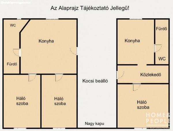 m2 telek- 2 külön lakrész. Nagyobb: 2 szoba, 1 konyha, 1 fürdőszoba-wc,Kisebb