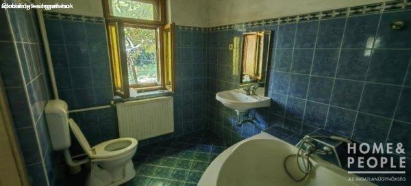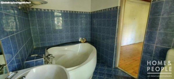 hálószoba, 2 db fürdőszoba, magas tégla lábazat, jó állapotú