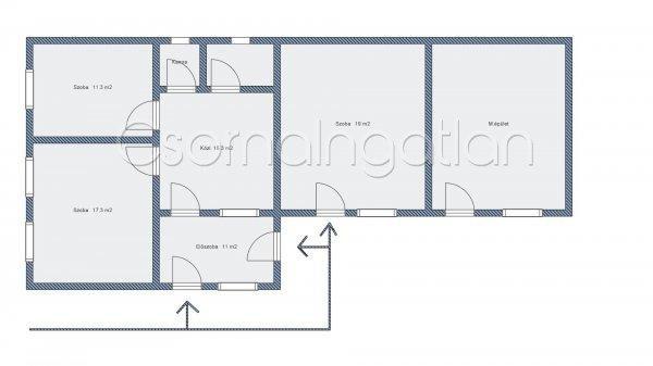 szoba- közlekedő - előszoba- kamra- konyhaMŰSZAKI JELLEMZŐK:- víz 1 helyiségben