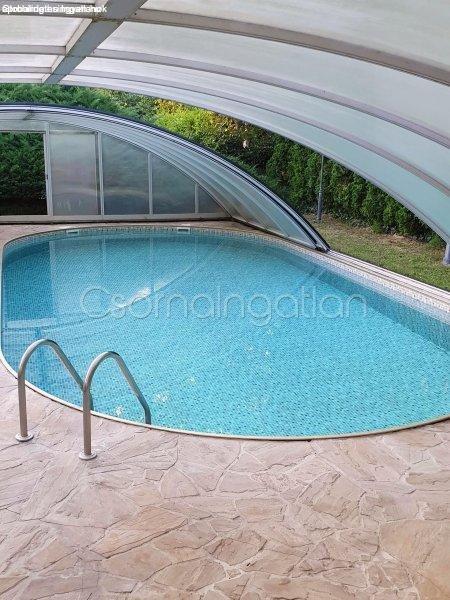 úszómedence- kerti tó- parkosított, gondozott 2500 m2-es telek- automata kerti