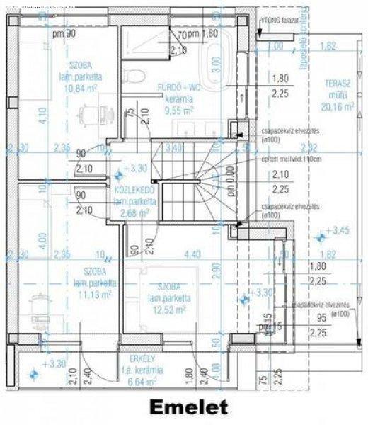 amerikai konyha- 22 m2-es terasz- 20 m2-es emeleti terasz- 7 m2 erkély- 3