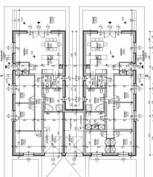 konyhás nappali 37,6 m2- 16,80 m2 garázs- 23,7 m2 terasz- fűtést és melegvíz