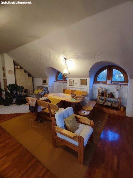 valamint lakó funkciójú helyiségek, a tetőtérben lakószobák, gardrób, fürdő,