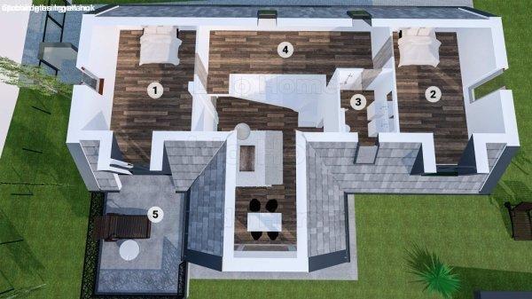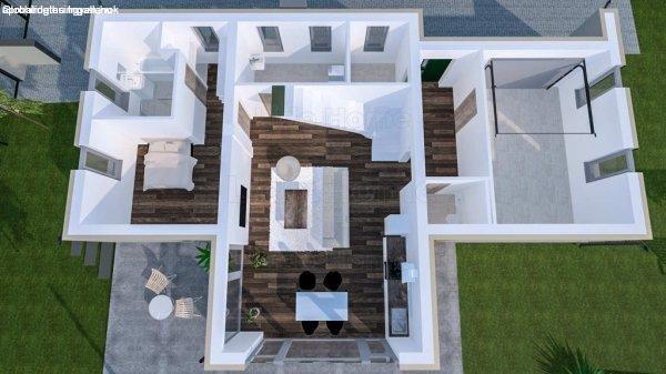 Belül hatalmas konyha-nappali-étkező, 3 szoba, gardrób, galéria, 2 fürdőszoba +