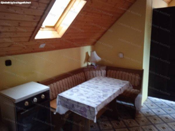 garázs, ez fölött található egy tetőtéri lakás, két szobával, konyha plusz