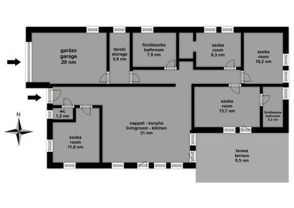 is tarthatsz. Telek mérete: 817 nmA ház nettó alapterülete: 110 nm + 20 nm