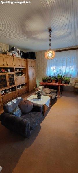 lévő 110 nm2-es részben vegyes falazatú lakóház, melyben 3 szoba, étkező,