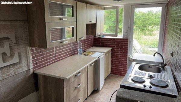 hidegburkolatok, kád, WC és zuhanyfülke is 2 évesek. A konyhában új bútorok