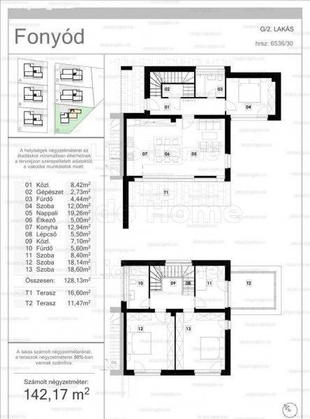 terasz , a felső lakás részen közlekedő, 3 szoba, 2 fürdőszoba