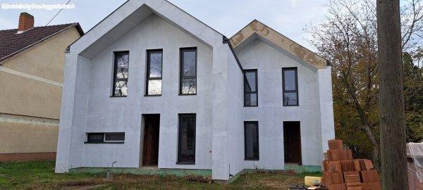 szerkezetkész ikerház mindkét fele, külön választott 280 m2 alapterületű telken