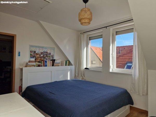 beépített gardrob szekrény), fürdőszoba, külön WC és padlás feljáró található. A