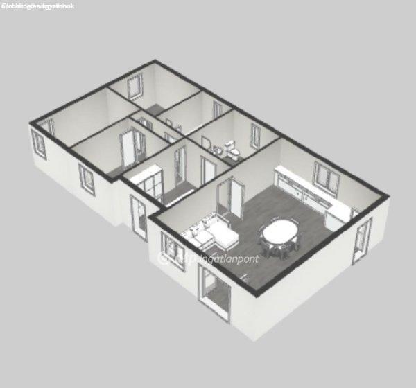 konyhás nappali :41,2 nm - hálószoba :9,55 nm - hálószoba :9,05 nm - hálószoba