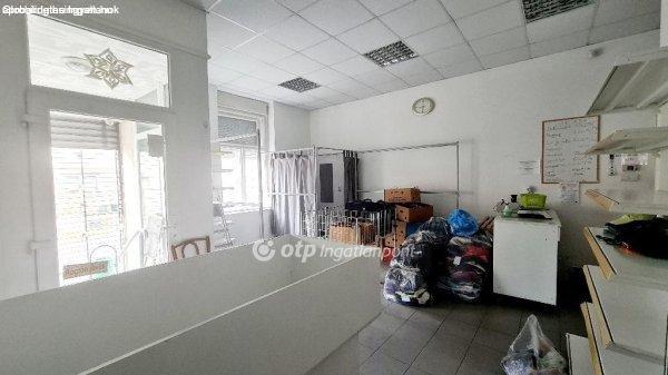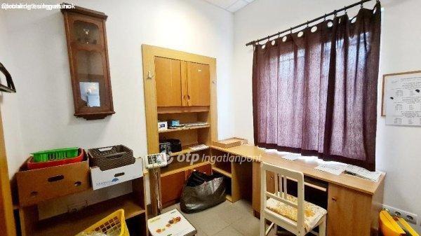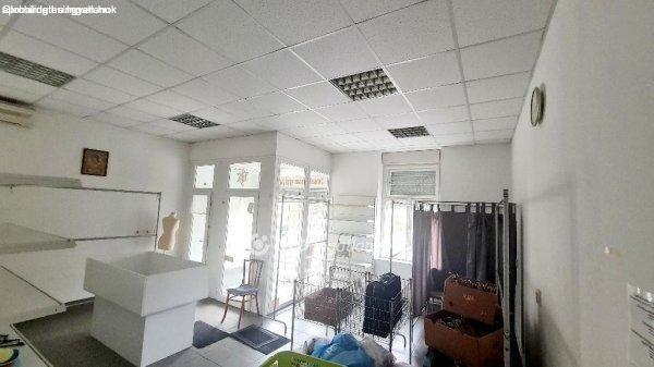 elhelyezkedő üzlethelyiség, ennek folytatásában egy iroda, kis közlekedő,