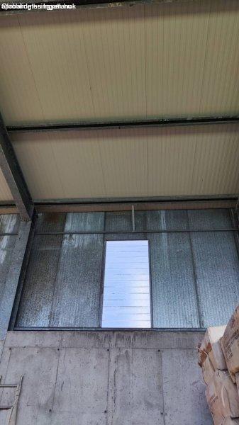homlokzati magasság 10m- 935 m2 méretű csarnoképület- 50 cm vastag, horganyzott