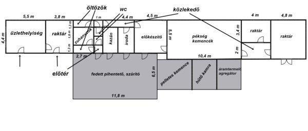 kialakítva, majd a sütöde. A sütödében egy pihentető, kelesztő kamra, valamint