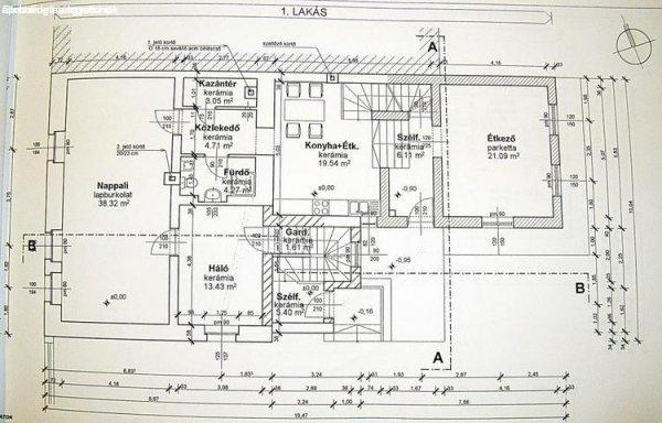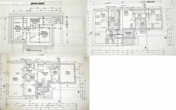 konyha-étkező rész is megtalálható. A nagyobbik (1.) lakás földszintje 110,52