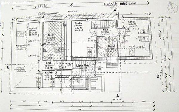 órákkal rendelkezik. A kisebbik, 81,37 m2-es (2.) lakás tetőtéri beépítés, saját