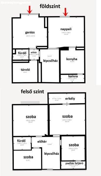 vendégfogadáshoz is. A konyhát egy MÉRETES KAMRA egészíti ki. A földszinten van