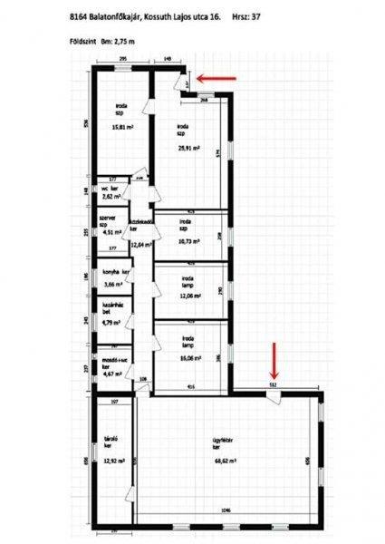 több szoba is kialakítható. Az ügyféltérből nyílik egy irattárnak használt,
