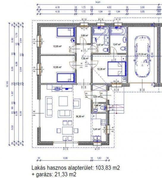 nappali, konyha-étkező, 3 hálószoba, két fürdőszoba, 3 WC, igazán remek otthona