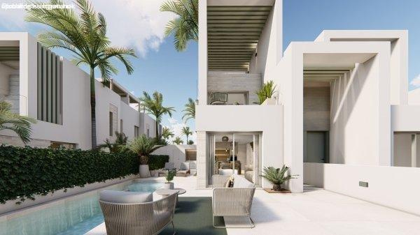 Családi házak rovaton belül a(z) "Eladó 107.00 nm-es Új építésű Ikerház Rojales" című hirdetést látja. (fent)