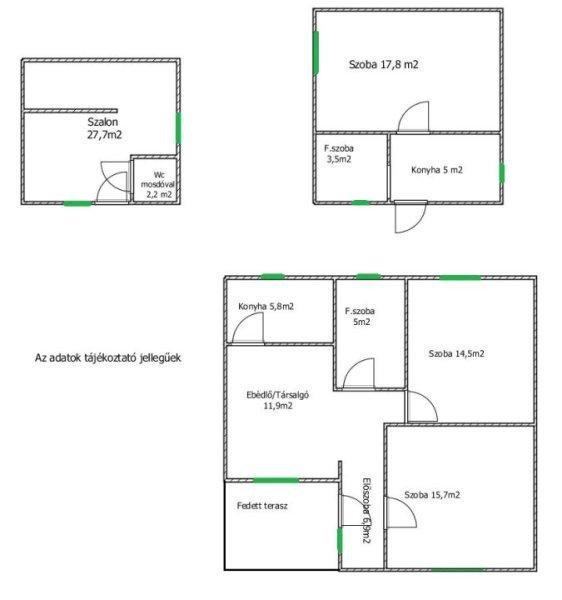 nettó 60m2-es családi házat, mely mögött egy nettó 27m2-es szintén lakható kis