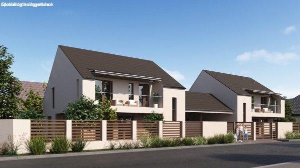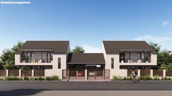 kivitelezésben épülő, közel 0 energiaigényű, nappali + 4 szobás ikerházfél