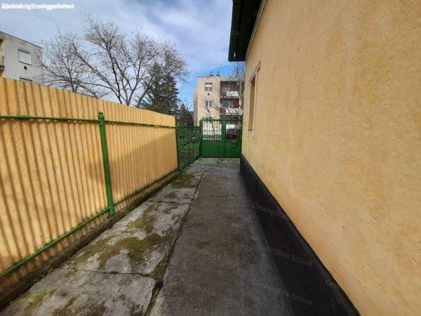 Családi házak rovaton belül a(z) "Szolnokon ikerház rész kis kerttel eladó!" című hirdetést látja. (fent)