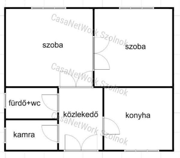álló helyiségek: konyha, 2 szoba (egymásból nyílnak), fürdőszoba+wc, kamra,