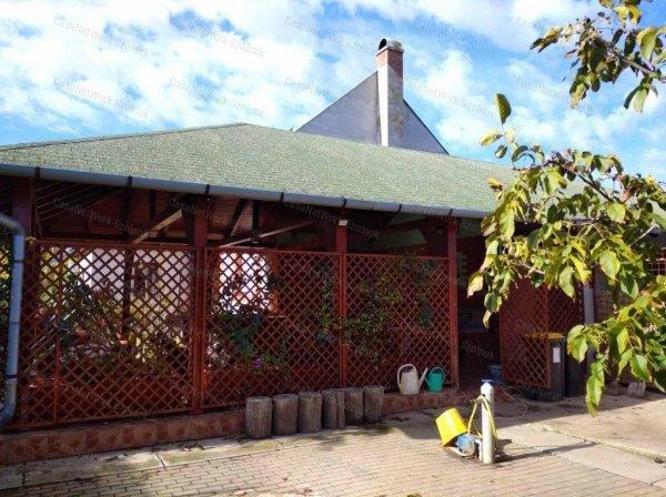 házhoz tartozik egy kb 40 m2-es fedett terasz, ahol az egész család együtt