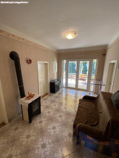 nappali, konyha étkezővel, fürdőszoba, külön WC, kamra és egy fedett terasz,