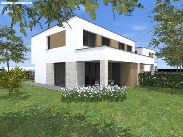 modern stílusú iker családi házat,földszinti és emeleti egyenként 13- 13