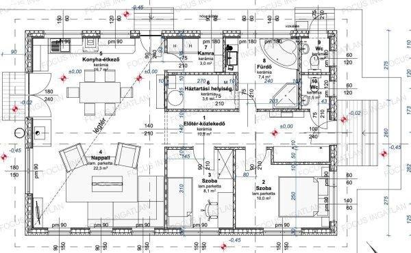 mindössze 10 percre, 7 297 nm nagyságú telken, 85 nm hasznos alapterületű,
