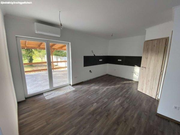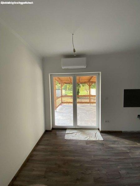 cm szigeteléssel- fedett terasz, burkolva- beépített műanyag nyílászárók- modern