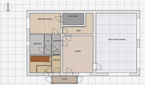 héjazattal. A földszint alapterülete nettó 114 m2, belmagassága 3,1 m.