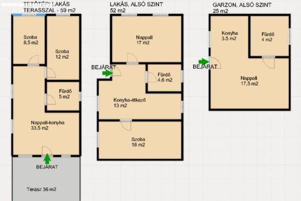 lakás + 13 m˛ fedett teraszMellette 25 m˛-es külön bejáratos garzonlakásFelső